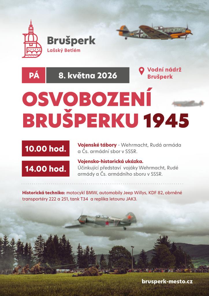 Město Brušperk srdečně zveme širokou veřejnost na historickou vojenskou akci, která proběhne 8. května 2026 u přehrady.